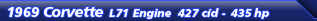The 1969 model year is the last year of production for the 427 cid Big Block Chevrolet engine; with the L71, L88, L89 and ZL1 427 cid big blocks becoming legendary Corvette engines for delivering incredible power and amazing performance.