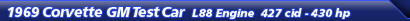 The L88 engine is rated at 430 hp at 5200 rpm but maximum power was greater at a higher rpm range, estimated to be 550 hp at 6400 rpm. Installation of exhaust headers also significantly increased horsepower.
