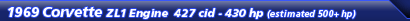 The all aluminum 427 cid ZL1 engine is 25 lbs lighter than the small block Corvette engine; making the 1969 ZL1 Corvette the lightest 3rd generation (1968 to 1982) production Corvette with the best power to weight ratio.
