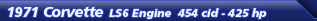 The most powerful 454 cid big block Chevy engine was only offered for the 1971 model year and referred to as the LS6 engine.